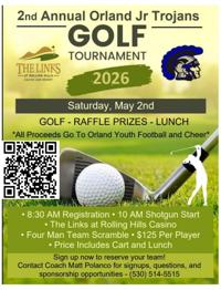 The Orland Jr. Trojans Football and Cheer program will host its 2nd annual golf tournament on May 2 at The Links at Rolling Hills Casino. Proc…